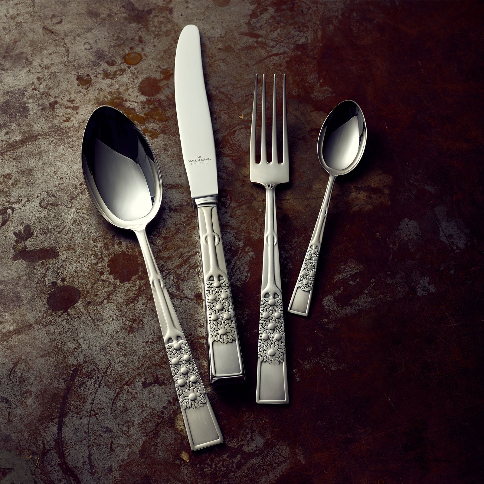 High-quality table knife from WILKENS in sterling silver - daisies pattern. More cutlery parts available for a stylishly set table! On request with WILKENS master engraving (extra charge).