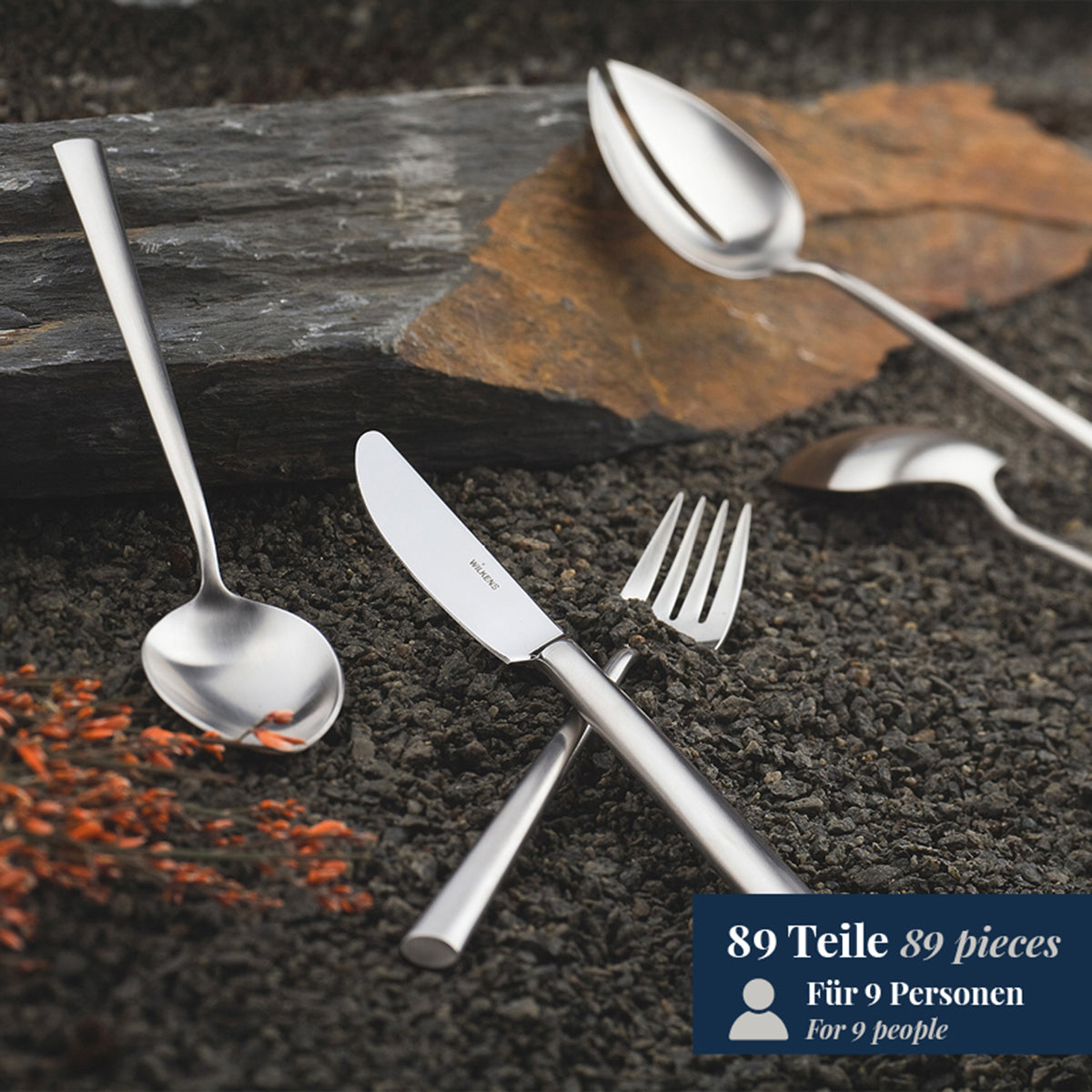 WILKENS PALLADIO Besteck ist wahlweise mit hochglanz polierter oder seidenmattierter Oberfläche lieferbar - in Sterlingsilber, versilbert sowie als Edelstahl Besteck mit einer großen Auswahl an Besteckeinzelteilen und Vorlegeteilen.