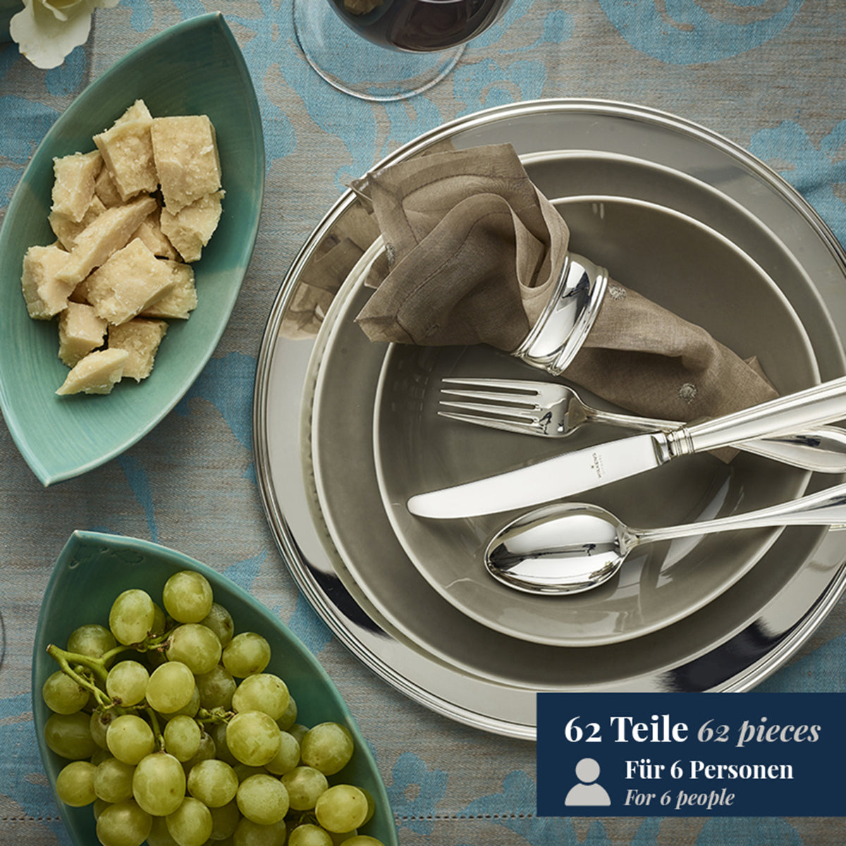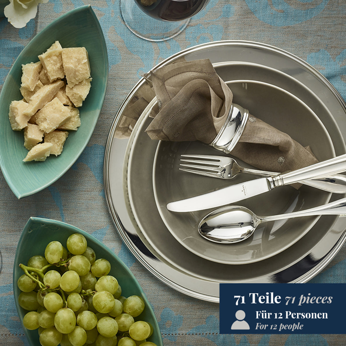 The SCHWEDISCH FADEN cutlery pattern offers a large selection of individual cutlery and serving pieces in sterling silver, silver-plated or as WILKENS SCHWEDISCH FADEN stainless steel.