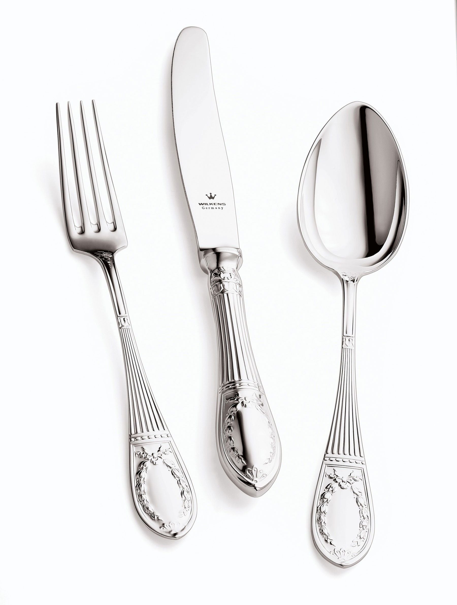 WILKENS STRASSBURGER EMPIRE cutlery is available in sterling silver and in 180g Royal silver plating with many serving pieces and serving cutlery.